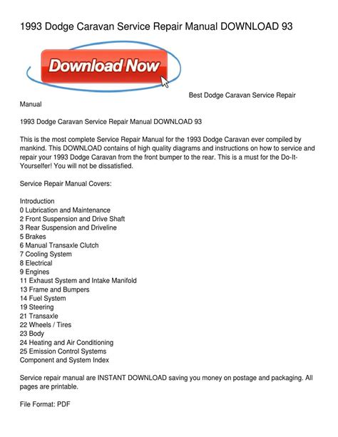 Currently you are looking for an 1993 Dodge Caravan Service Repair Manual Software example of which we provide here in some type of document formats like as PDF, Doc, Strength Point, as well as images of which will make it easier for you to create an 1993 Dodge Caravan Service Repair Manual Software yourself. For a more clear look, you can open a few examples below. All the examples about 1993 Dodge Caravan Service Repair Manual Software on this web site, we get from a number of sources so you could create a better document of your own.
